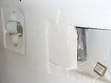 The letters record that she should be now kept more securely and it is thought that this is the reason that the only doorway was replaced with a solid wall.[2] The cell had two small openings into the church. The first was cruciform and it was intended to allow Carpenter to take communion. The other was a squint that allowed her to see out but only in the direction of the church's altar.[2] It is thought that there was a third window to the outside world, but this is no longer extant.[3] This window would have been made too small for her to leave and its purpose would have been to allow her to be fed and watered, and for her bodily wastes to be removed. It is not known what happened to Carpenter after this date, but the usual practice was to bury anchorites where they had lived and died. After an anchoress died, her cell would have been opened and a grave would be dug under her cell.[2]