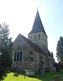 St James's church, Shere is largely 13th-century and may include Roman materials