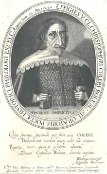 Christoph Köler or (in Latin), Christophorus Colerus (1 December 1602 in Bunzlau, Fürstentum Schweidnitz-Jauer - 19 April 1658 in Breslau) was a German poet and writer. A student of Martin Opitz (1597–1637) and follower of his Baroque poetical reforms,[1] Köler later revised his papers and published a biography of his teacher.[2] His most noted student was the German priest, and mystical poet Angelus Silesius (1624–1677).[3]