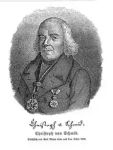 {{cite encyclopedia}}: Missing or empty|title=(help) - 1 2 Binder, "Schmid, Christoph von" in Allgemeine Deutsche Biographie, Band 31 (Leipzig, 1890), S. 657-659. (in German)