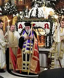 Bishop Christophoros (Rakintzakis) (Greek: Θεοφιλέστατος Επίσκοπος Ανδίδων κ.κ. Χριστοφόρος), born George Rakintzakis (May 1, 1931, Athens, Greece – February 14, 2020,[1][2] Greece), H.B.A., B.Div., B.Ed., M.A.,[3] was the first Vicar-Bishop of the Greek Orthodox Metropolis of Toronto (Canada) under the Ecumenical Patriarchate of Constantinople (1999–2017), and the titular Bishop of Andida (1999–2020).[note 1] He also served as the first Dean of the Toronto Orthodox Theological Academy from October 1997 through to June 2006. In addition, he was a brother of the historic Hosios Loukas monastery in Boeotia, Greece. He officially retired in 2017 and resided in Greece for the remainder of his life.[5]
