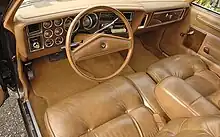 The dash had been designed with Chrysler's push-button controls for the TorqueFlite automatic in mind, with the "AstraDome" instrument cluster covering the part of the steering column a column shifter would come out from under then-standard practice, so manual cars used a floor shifter.[8] Due to the installation of the "AstraDome" instrument cluster extending outward towards the steering wheel, the traditional installation of the turn signal lever was relocated to the dashboard underneath the "TorqueFlite" pushbutton gear selectors and was installed as a sliding lever that would return to center as the steering wheel returned to the center position.