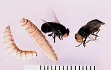 | Chrysomya bezziana adult and larva | |