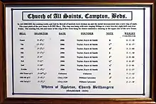 - ↑ "Campton & Chicksands - History of All Saints' Bells". www.camptonandchicksands.org.uk. Retrieved 6 January 2016.