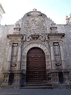 On August 17, 1578, based on 20,000 ducats donated by Diego Fernández Hidalgo, the construction of the Jesuit College of Arequipa began.[1] The church only began to rise in the year 1595.[1] It was under the direction of brother Felipe and was completed in 1698.
