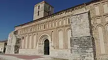 It is, without a doubt, the best example of Cuellar's Mudejar style and, in the opinion of the architect and historian Vicente Lampérez y Romea, has the best church plan of this style.[1] It consists of a wide central nave and two smaller ones, with a triple apse decorated with a series of blind semicircular arches, framed windows, and friezes of angled arches.