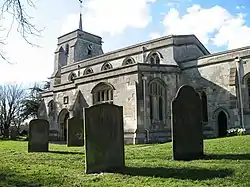 The church was completely reconstructed in the 15th century though the core is 13th-century. The west tower is modern. The arcades of the nave are magnificent; the north arcade is considerably more ornate than the south arcade. The font is of the 13th century. The east window of the south aisle has a central niche and brackets at the sides for sculpted figures.[2]