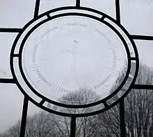 The original 1960s window with its design scratched onto the glass was destroyed by vandals in the late 1990s and was replaced with a new window with the image acid-etched into the glass and designed by the then Churchwarden Glenn Christodoulou.[13]