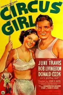 Circus Girl is a 1937 American action film directed by John H. Auer and written by Adele Buffington and Bradford Ropes. The film stars June Travis, Robert Livingston, Donald Cook, Betty Compson, Charles Murray and Lucille Osborne. The film was March 1, 1937, by Republic Pictures.[1][2][3]