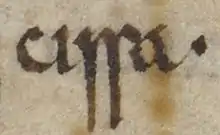 The Anglo-Saxon Chronicle lists Cissa as one of the three sons of Ælle, who in the year 477 arrived in Britain at a place called Cymenshore (traditionally thought to have been in the Selsey area of Sussex[1]). The Chronicle recounts that Ælle and his three sons fought three battles: at Cymenshore in 477, one near the banks of Mercredesburne in 485 and lastly one at Pevensey in 491, where (the Chronicle claims) all Britons were slaughtered.[1][2][3][4] The Anglo-Saxon Chronicle was originally compiled in Winchester, the capital of Wessex, and completed in 891. It was then distributed to various monasteries throughout the country for copying. The different versions were then updated periodically. The chronicle texts chart Anglo-Saxon history from the mid-fifth century until 1154. Before the Norman Conquest of 1066 the manuscripts were mainly written in Old English; post-Conquest the scribes tended to use Latin.[5][6] The original Chronicle was commissioned during the rule of Alfred the Great r.871–899 over 400 years after Cissa, and historians regard the accuracy of the events and dates listed during the fifth century as questionable.[5][6][7] The sources for the fifth century annals are obscure, however an analysis of the text demonstrates some poetic conventions, so it is probable that the narrative derived from an oral tradition, such as sagas in the form of epic poems.[4][5] The Anglo-Saxon Chronicle was commissioned for a number of reasons, including propaganda—it provided genealogies of the kings of Wessex, showing them in a positive light. (Wessex had absorbed the Kingdom of Sussex, founded by Ælle, during the reign of Egbert of Wessex[5] r.802–839.)