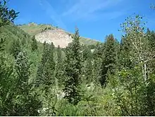 The head scarp of the Grandview Peak landslide[5] near the top of City Creek Canyon