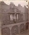 The earliest royal structure he built here was the Royal courtyard or 'Rai Angan',[9][10][11] which was the beginning of the building of the City Palace complex. The court was built at the location where the hermit had advised Maharana to build his new capital.[8][9][10][11][12]