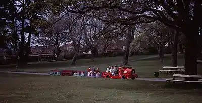 Three different trains have been operating around the paths of the park since 1960,[7] giving rides to the children of Launceston. The first train was made in 1960 by TJ & ND Burness, an engineering business at 6 Herbert St Launceston. The train consisted of an engine and four carriages, brightly coloured, and was known as Little Toot.