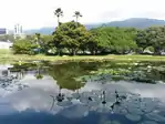 The Venezuela Lagoon is the largest body of water on the campus, and takes the shape of the country it is named for.[7] By 2018, the lagoon was reported to have lost half its water; the native Santa Cruz (Victoria amazonica) water lilies, which were 8 ft across and strong enough to hold people, had died out.[6][7] Other lagoons in the gardens are completely dry.[6]