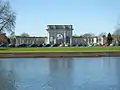 The City War Memorial, Nottingham, also known as the Nottingham Municipal War Memorial and the City of Nottingham War Memorial, is the main war memorial for the city of Nottingham in England.[2] It comprises a memorial arch of Portland stone with three openings and wrought iron gates, and stone flanking arcades. It was unveiled in 1927 beside a new park overlooking the River Trent, and became a Grade II listed building in 1972.