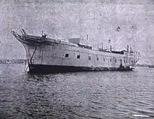 In 1923, City of Adelaide was purchased by the Admiralty and towed to Irvine, Scotland, where she was placed on the same slipway that she was to return to in 1992. After conversion to a training ship, she was towed to Greenock and commissioned as a Naval Drill Ship for the newly constituted Clyde Division of the Royal Naval Volunteer Reserve (RNVR).[23] As the new cruiser HMAS Adelaide had been commissioned only the previous year, to avoid confusion of two British Empire ships named Adelaide the clipper was renamed HMS Carrick.[24]