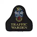 A former Devon and Cornwall Police traffic warden's uniform patch. This role is now defunct, with responsibility passing from police services to council services
