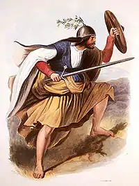 The Fergussons of Argyll claim descent from Fergus Mór, king of Dál Riata who came from Ireland across Argyll.[2] Most shields of this family include a Boar's head which indicates a connection with the early Scots of Dál Riata.[2]