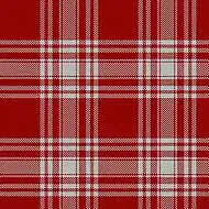 Menzies 1815[15] | The red and white Menzies tartan appears in the Cockburn Collection (c1815) under the name, MacFarlane, but this is taken to be an error on the part of General Cockburn at a time when the establishment of clan names for tartan was in its infancy. The same sett was certified as Menzies, by the clan chief, in the collection of the Highland Society of London (c.1816). The tartan is woven in various colours, green, black, red and white to the same design. |