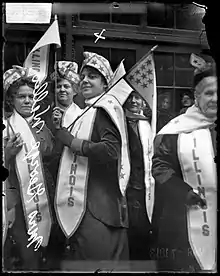 In 1910, Clara Barck became involved in the cause for women's suffrage, joining the Chicago Political Equity League. In 1912, she was elected chair of the Park Ridge Improvement Association (now the Twentieth Century Club) and the following year she headed the Parade Committee for the Illinois Delegation in the Votes for Women Procession in Washington D.C., enthusiastically leading a large contingent of marchers. In 1914, she addressed a rally at Chicago's Auditorium Theatre. Also in 1914, she hosted a fund-raising event in her Kalo Shop together with a group of society women. It was attended by some 100 women who contributed to the melting pots with a piece of gold or silver.[3]