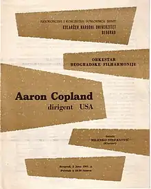 - Milenko Stefanović and the Belgrade Philharmonic Orchestra with Aaron Copland (Belgrade, June 2, 1961)[12][13][14][15][16]