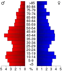 In the county, the population was spread out, with 26.30% under the age of 18, 7.60% from 18 to 24, 26.50% from 25 to 44, 22.50% from 45 to 64, and 17.10% who were 65 years of age or older. The median age was 39 years. For every 100 females there were 97.00 males. For every 100 females age 18 and over, there were 94.00 males.