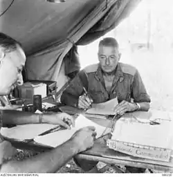 Brigadier Claude Ewen Cameron, MC & Bar, OAM, ED (13 September 1894 – 10 September 1982)[1] was an Australian Army officer. Cameron fought during the First World War with the Australian Imperial Force, serving at Gallipoli, Menin Road and Amiens. He was awarded the Military Cross for his actions during the Battle of Amiens, and won a Bar to the award for actions on 3 October 1918 during the Hundred Days' Offensive. He took command of the 18th Battalion in July 1933 and was promoted to a temporary colonel in 1940, taking command of the 8th Brigade. In August 1942, Cameron volunteered to serve in the Second Australian Imperial Force and, under his command, the 8th Brigade fought in the Huon Peninsula campaign. Cameron relinquished command of the brigade in August 1944 and took command of the 2nd Brigade from until December 1944. He was transferred to the Reserves on 27 February 1945 and mentioned in despatches for his service in New Guinea. Cameron returned to civilian life and was appointed managing director of Syndney Harbor Ferries in 1951. He retired in 1964. Cameron was awarded the Medal of the Order of Australia in 1980 and died two years later.[1]