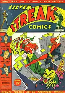 ![]() Cover of Silver Streak Comics #8 (March 1941), art by Jack Cole. | |