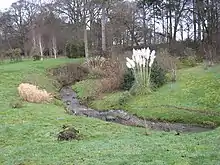 There is evidence of Stone Age, Iron Age, Roman and medieval activity here, although the name "Cliffe" appears to be a medieval name possibly referring to Cliffe Hall and its park.[3] Cliffe has no church, but it does have its own parish, possibly owing to the previous existence of a chapel at Cliffe Hall.[4] At least part of Cliffe shares the Piercebridge postal address, although Piercebridge is north of the Tees, in County Durham: hence some Cliffe locations are described in some records as Piercebridge locations.[4] This area, being close to Manfield, was part of the Gilling West wapentake at the time of the Norman Conquest, so that the later Manfield parish, which included Cliffe, had 2,754 acres (11.15 km2) in Gilling East wapentake and the 700 acres (2.8 km2) comprising Cliffe in Gilling West wapentake.[3][5] In 1717 there were places in Cliffe known as Haverfield, Willow Pound, Stonebridge-fields, Scroggy Pasture, Lime Kiln-fields and Carlberry, together with the 13th-century mill and mill-dam.[6] In the early 1820s, the village was described thus: