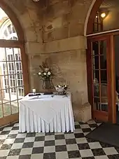 Upstairs has been extensively refurbished, but retains its arched windows, and verandahs with timber lined ceilings which access onto the roof of the portico.[1]