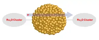 Electron transfer between discrete Ru3O clusters through gold nanoparticles, as pictured, is ultrafast.[7]