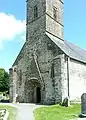 The earliest part of the church dates back to around 1180.[1] Its doorway is the crowning achievement of Hiberno-Romanesque style. It is in six orders, and has a large variety of motifs, animal heads, foliage, human heads etc. Above the doorway is a pointed hood enclosing triangles alternating with bizarre human heads, and below this is an arcade enclosing more human heads. The early 13th century east windows in the chancel is an example of a late Romanesque windows. The chancel arch was inserted in the 15th century, and is decorated with angels, a rosette and a mermaid carrying a mirror. The supporting arches of the tower at the west end of the church are also decorated with 15th century heads, and the innermost order of the Romanesque doorway was also inserted at this time. The sacristy is also 15th century. The church had a Romanesque south transept, which is now in ruins, and a Gothic north transept, which has been removed. In the Roman Catholic church one mile to the south is a 14th-century wooden statue of the Madonna and Child, and on the roadside near this church is a 16th-century tower-house.