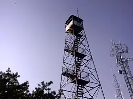 ![]() Fire tower atop Clove Mountain, with cell tower visible. | |