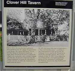 A National Park Service marker at the front entrance of the Clover Hill Tavern reads:[6]
