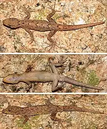 1. 1 2 3 4 5 Karunarathna, Suranjan; De Silva, Anslem; Gabadage, Dinesh; Botejue, Madhava; Madawala, Majintha & Ukuwela, Kanishka D.B. (2021). "A new species of day gecko (Reptilia, Gekkonidae, Cnemaspis Strauch, 1887) from Sri Lanka with an updated ND2 gene phylogeny of Sri Lankan and Indian species". Zoosystematics and Evolution. 97 (1): 191–209. doi:10.3897/zse.97.60099.