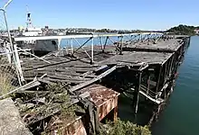 The Drop Ship was still operating in August 1868.[89] It was removed to a dock, in January 1869, as it required an overhaul and repairs,[90] but does not appear to have ever been used again.[41] Its location is shown on a chart of the port from 1869.[91]