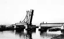 The importance of Morpeth as a port began to decline, once the railway from Newcastle reached East Maitland in 1857. A branch railway to the old port was opened in 1864. There were coal staiths[64] and a railway siding for these at Morpeth. These new staiths were still unfinished in early 1866.[65] Once completed, the Morpeth coal staithes were used,[66] but infrequently.[67] By the late 1870s, little coal had been loaded there[68] and, by the late 1880s, the coal staiths were in a derelict and dangerous condition.[69] Construction of the Morpeth Bridge, downstream of the staiths, in 1896 to 1898, ended any possibility of their revival, as only very small steamers could pass under it.[70] Morpeth continued as a port but mainly for agricultural products.