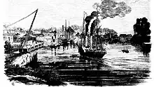 Although it lies far downstream from the tidal limit,[62] Morpeth was the effective head of navigation of the Hunter, because farther upstream there were many large bends in the river between Morpeth and Maitland. Aside from greatly increasing the distance by water to Maitland, these bends were difficult for vessels to navigate. It also lay just upstream of the confluence of the Hunter River and the Paterson River, below which the river broadens. Morpeth had been a river port from the 1830s.[63]
