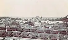 Further upstream from the Dyke, on the South Channel of the Hunter River, were some privately operated chutes capable of another 3,000 tons per day.[101] These private operations dated back to those of the Waratah Coal Company, which opened its own 600 foot long wharf on Bullock Island, in March 1865. The wharf was connected first to the company's mine at Waratah and later to another of its mines at Charlestown. It was this venture, and the small township that sprang up near the wharf, which gave the northern part of the port area its name, Port Waratah. The port facility and railway line were bought by the Caledonian Coal Co., who used it until 1904, when the river had become too shallow due to silting.[105]