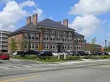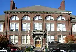 The Coddington School is a historic school building at 26-44 Coddington Street in Quincy, Massachusetts. Built in 1909, this three-story brick building is the finest Colonial Revival school building in the city. It was designed in late 1907 by Charles A. Brigham, who is not to be confused with the better known and similarly-named Charles Brigham.[2] It was used from the 1960s to the 2000s as part of Quincy Junior College (now Quincy College),[3] and is now the headquarters of the Quincy School Department, as well as other municipal departments.