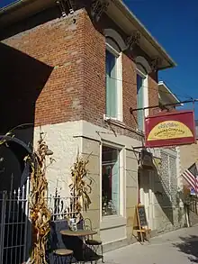 Most of the commercial buildings from the later decades of the 19th century are brick Italianate structures that feature flat roofs and parapetted fronts. Some of them have metal cornices, which were popular in many Iowa commercial districts of that era.[2] Houses from this period featured styles that were popular in the late Victorian era: Queen Anne, Eastiake, Shingle, as well as the Italianate. There are also a couple of small bungalows and plain, L-shaped front-gable houses. The tallest structure is the three-story Bard Hotel (207 N. Cody Road). The old Le Claire city hall at 201-203 N. Cody has a concave hipped roof, pedimented window hoods, and a decorative cornice. The former Presbyterian Church, located at 322 N. Cody Road, is the only historic church building in the district. It is a small frame structure that is four bays long with a central entrance tower on the front.