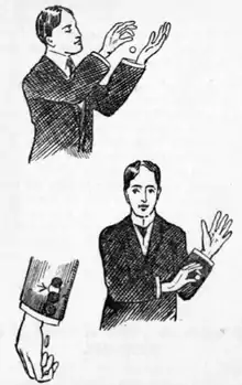 Coin magic is the manipulating of coins to entertain audiences.[1] Because coins are small, most coin tricks are considered close-up magic or table magic, as the audience must be close to the performer to see the effects. Though stage conjurers generally do not use coin effects, coin magic is sometimes performed onstage using large coins. In a different type of performance setting, a close-up coin magician (or 'coin worker') will use a large video projector so the audience can see the magic on a big screen. Coin magic is generally considered harder to master than other close-up techniques such as card magic, as it requires great skill and grace to perform convincingly, and this requires much practice to acquire.