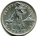 10 centavos | 17.5 mm (1903–1906) 16.5 mm (1907–1935) | 2.69 g (1903–1906) 2 g (1907–1935) | 90% Silver (1903–1906) 75% Silver (1907–1935) | Reeded | Lady Liberty striking an anvil with a hammer and Mt. Mayon | Eagle atop stars-and-stripes shield; legend "United States of America"; mint date & mintmark | yyyy | 1903 1903 S 1904 1904 S 1905 1906 1907 1907 S 1908 1908 S 1909 S 1911 S 1912 S 1913 S 1914 S 1915 S 1916 S 1917 S 1918 S 1919 S 1920 1921 1929 M 1935 M | |