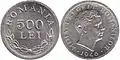 500 lei | 32 mm | 12 g | silver 0.700 | June 1944 | 28 August 1945 | 15 September 1945 | |||