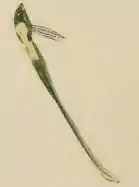 The larvae feed on Silene nutans, Silene otites, Silene italica, Arenaria grandiflora, Cerastium arvense and Lychnis viscaria. Silene nutans can sometimes be found in the UK National Vegetation Classification habitat communities: the very widespread MG1 (Arrhenatherum elatius grassland), and thus can be found where Arrhenatherum elatius, (also known as false oat grass), and/or Dactylis glomerata, (cock's-foot), occurs.[2] They create a trivalved, tubular silken case of about 12 mm (0.47 in) long. The case is yellowish white, with several characteristic dark length lines. The mouth angle is about 40°.[3]