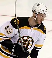 On June 26, 2015, Miller was traded by the Kings along with Martin Jones and the 13th overall selection (Jakub Zbořil) in the 2015 NHL Entry Draft to the Boston Bruins in exchange for Milan Lucic.[4] After playing one season in the Bruins' organization, he signed a two-year contract extension worth $2 million.[5]