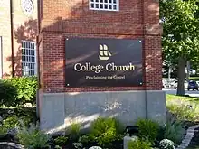 College Church's local ministries include a children's, youth and college ministry. The high school ministry was formerly led by Zach Fallon, now serving as an incoming senior pastor for a church plant in the Atlanta, Georgia south metro area. The college ministry is led by Ben Panner. The church offers the disability ministry STARS (Seeking to Always Reflect the Savior)[11] "to make access to worship, ministry, and fellowship a reality for any child or adult with special needs."[12] College Church has ties with church plant congregations in Chicago, Batavia, Lombard, and Naperville.[13] It has connections with the Outreach Community Center, and two resale shops. It runs a pastoral training program for pastoral residents.