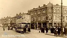 The spiritual needs of College Park residents were served by a Presbyterian Chapel (seats for 600) and a Baptist Chapel (seats for 150) on Kenmont Gardens. There was also Christ Church mission to College Park on the south side of Ponsard Road on the current site of the Mayhew Animal Home.[17] Christ Church Rangers, a local boys' football team formed in 1882, were based at the Christ Church Mission. An amalgamation with another local boys' team, St Judes Institute in the Queens Park Estate, led to the formation of Queens Park Rangers F.C. in 1886.[18]