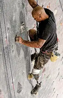 Bilateral lower-limb amputee Reggie Showers rock climbing on Trustep feet.