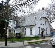 - First Reformed Church – A church built in 1872 in the small town New England style. The church is on a large lot, has a bell tower, and is adorned with "gingerbread" trim. On June 6, 2008, a fire caused damage in the steeple, which was repaired, maintaining the historical appearance of the building. (Up on 119th Street) In 2018 it was listed on the National Register.[70]